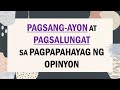PAGSALUNGAT SA PAGPAPAHAYAG NG OPINYON Sa pagpapahayag ng opinion ay hindi maiiwasan ang pagsalungat o pagsang-ayon. In Filipino adverbs that express affirmation or agreement about the action expressed by a verb about the quality expressed by an adjective or about another adverb are called pang-abay na panang-ayon. Pagpapatindi ng salitang gutom.