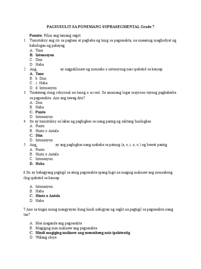 Pagsusulit Sa Ponemang Suprasegmental Pdf