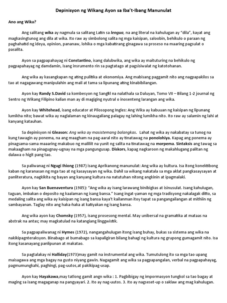 Depinisyon Ng Wikang Ayon Sa Ibat Ibang Pdf