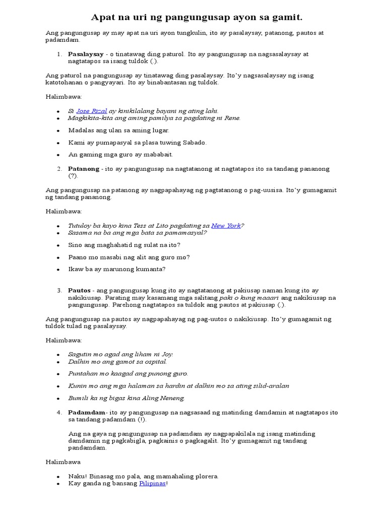 Documents Tips Ma Apat Na Uri Ng Pangungusap Ayon Sa Gamit Doc Pdf